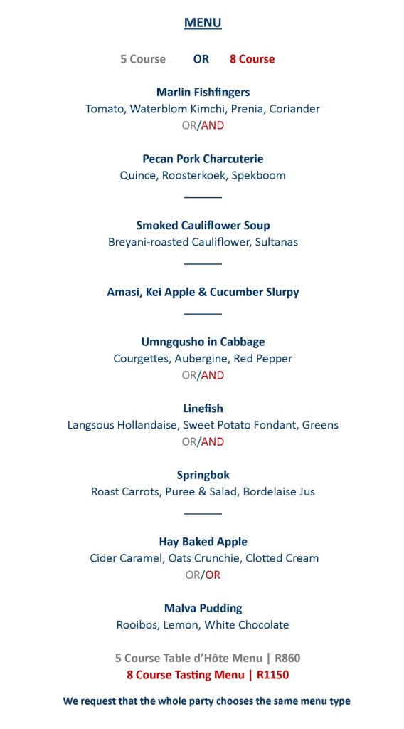 Our menu is subject to availability of local fresh produce, please note that changes may be made without prior notice.